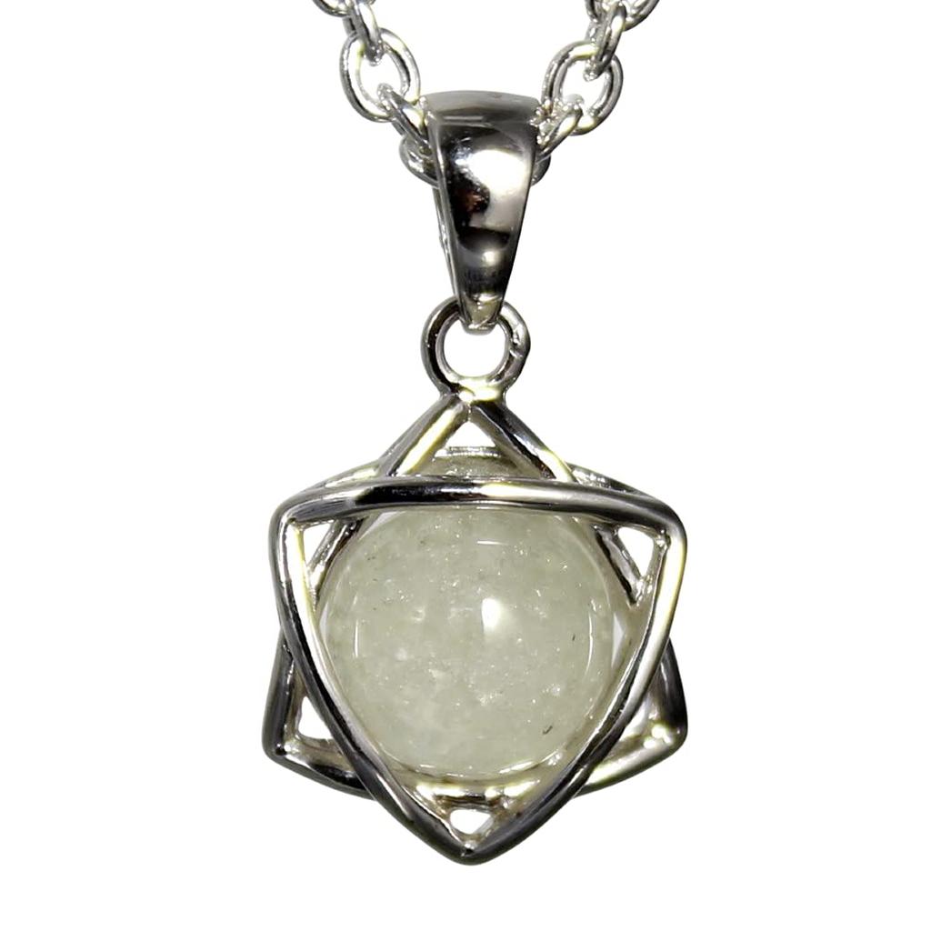 Hexagram Star of David Lucky Star Rivian Glass Meteorite Pendant Top Silver 925