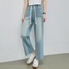 Summer Denim Jeans Women High Elastic Waist Drawstring Bleached Wide Leg Blue Jean Pants Streetwear Denim Trousers