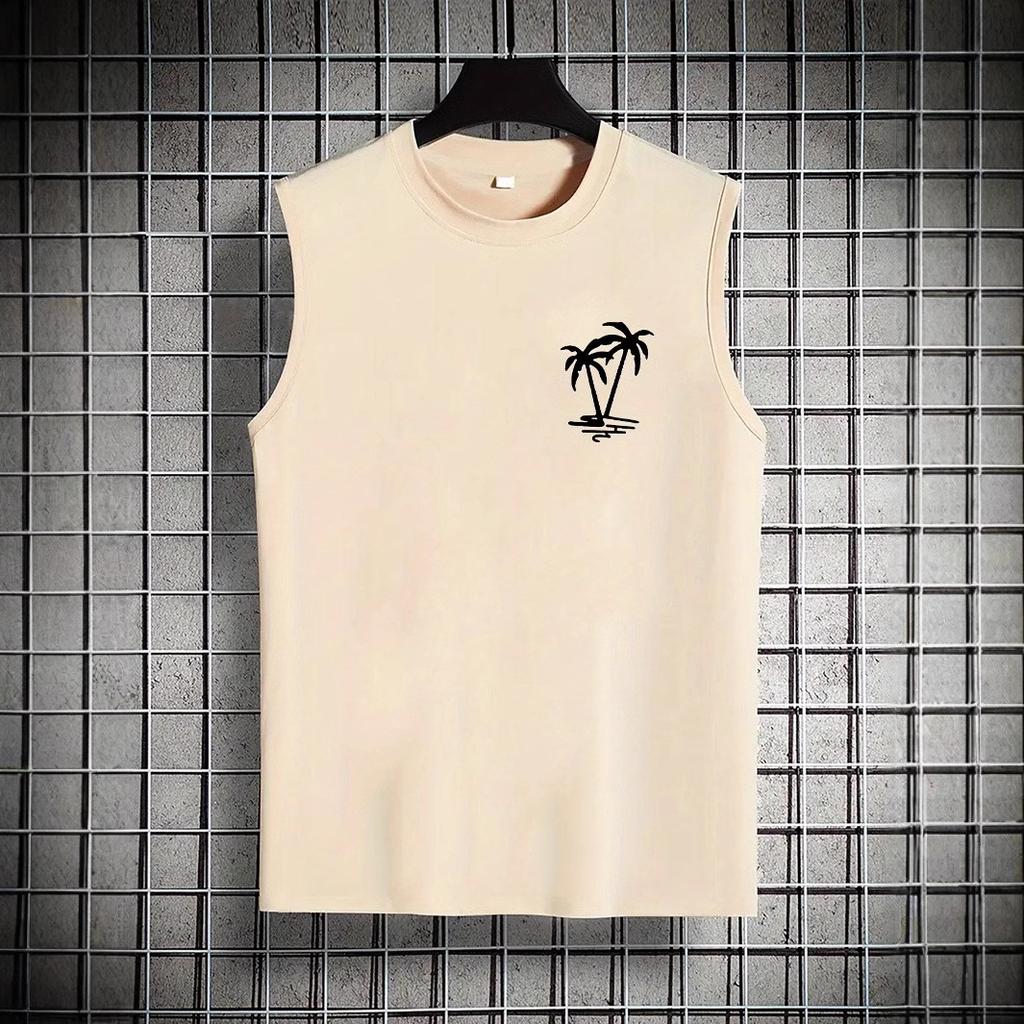 Summer men's casual palm tree print vest Casual fashion Sports Fitness Beach style men's cotton sleeveless vest