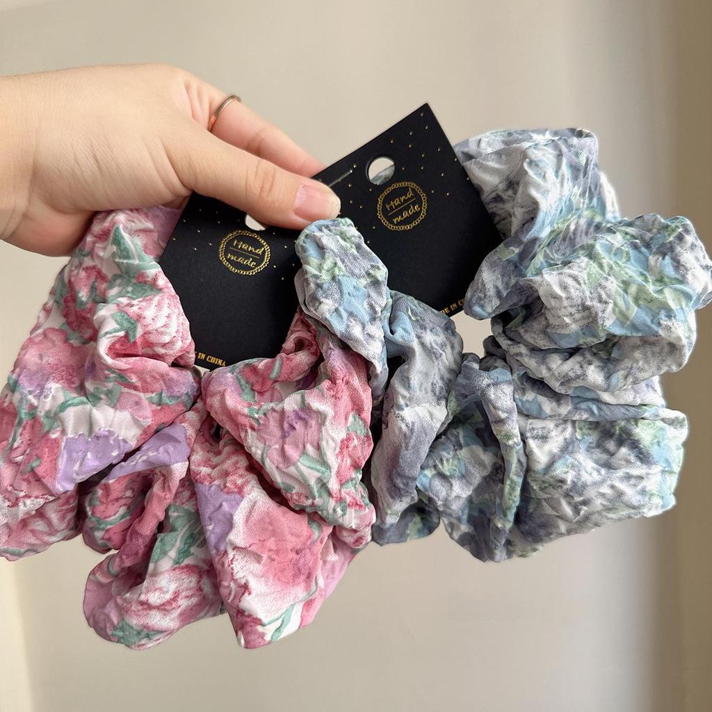 Gradient Retro Floral Monet-Inspired Hair Ring - High-End Seersucker Accessory