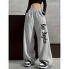 Pantaloni sportivi felpati hipster da donna stampati casual a vita alta dritti skinny a gamba larga