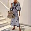 IHUASU Autumn Winter Printed Belt Hemp Bohemian Dress for Women