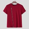 INCERUN Men Round Neck Short Sleeve Zip-up Hem Casual Slim Summer T-shirts Tops