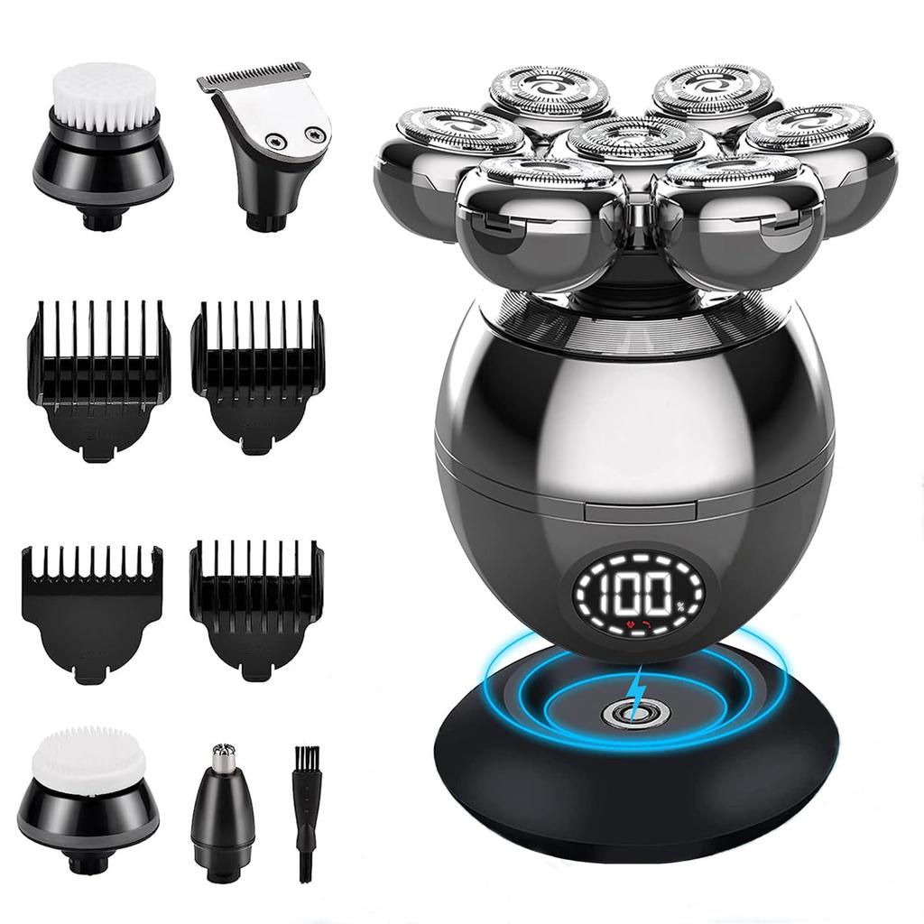 "7D Shaver Men's" Men's shaver comes with 7 floating shaving heads. 7D rotating beard shaver electric shaver perfectly follows the contours of your face and head, increasing the shaving area and saving more time. The floating head is fine and smooth, providing lasting sharpness during the shaving process for a faster, cleaner shave and a smoother, skin-friendly shaving experience.