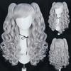 Parrucca Cosplay sintetica lunga colorata riccia per ragazze Lolita Cosplay con doppia coda di cavallo e 1 cuffia per parrucca