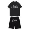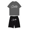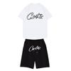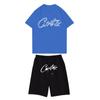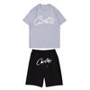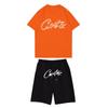 Completo da jogging unisex estivo casual stampato con scollo rotondo e maniche corte, t-shirt + pantaloncini. Tuta sportiva.