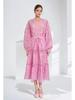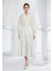 2023 Fall V-Neck Lantern Sleeve Top & Elastic Waist Hollow Skirt Set for Women