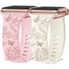 2x Bracelet pour Apple Watch 38mm-40mm-41mm Series 9 8 SE 7 6 5 4 3 2 1 / 42mm (Serie 10) Silicone Motif Fleur Rose et Violet