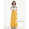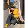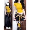Yellow Letter Rhinestone Short Sleeve Slimming T-Shirt - Women's Summer Figure-Flattering American Hot Girl Style