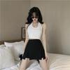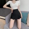 High-Waist A-Line Culottes with Slit - Black, Summer 2024 Women's Hip-Wrapping Short Skirt
