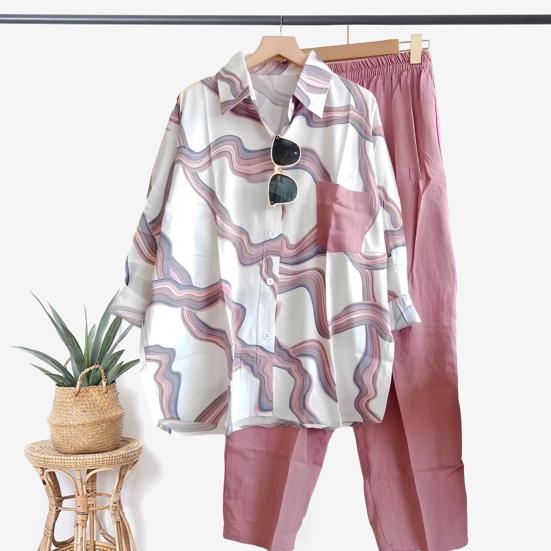 Women's Stripe Two Piece Outfit Long Sleeve Lapel Button Down Shirt Blouse And Pants Set Summer Casual Tracksuit — acquista al miglior prezzo sul negozio online Joom
