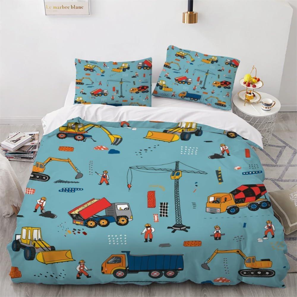3D printed high-quality cartoon car duvet cover set, children's and adult bed cover set, 3-piece set with zipper car microfiber