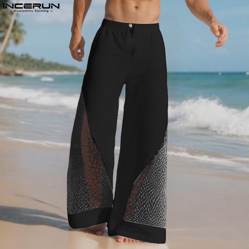 INCERUN Men Zip-up Waist Hollow Mesh Hem Patchwork Long Pants Trousers — acquista al miglior prezzo sul negozio online Joom