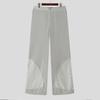 INCERUN Men Zip-up Waist Hollow Mesh Hem Patchwork Long Pants Trousers