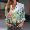 Camicia Blusa da Donna Stampa Bottoni Manica Lunga Casual Basic Colletto Regolare Top Con Tasche