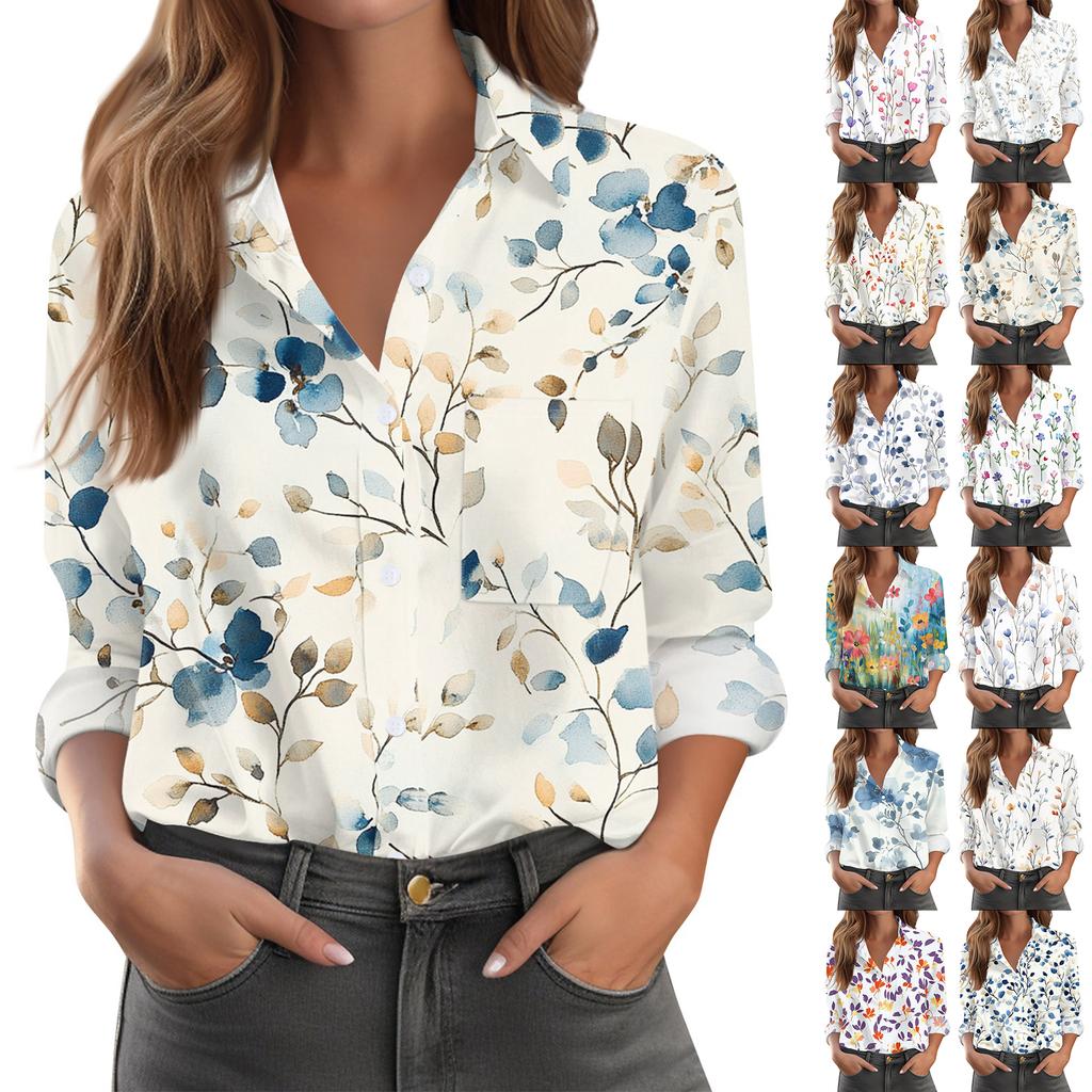 Camicia Blusa da Donna Stampa Bottoni Manica Lunga Casual Basic Colletto Regolare Top Con Tasche — acquista al miglior prezzo sul negozio online Joom