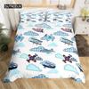 Cartoon Airplane Duvet Cover Aircraft Bedding Set Microfiber Cute Cloud Comforter Cover Twin King For Kids Boys Girl Gift Room