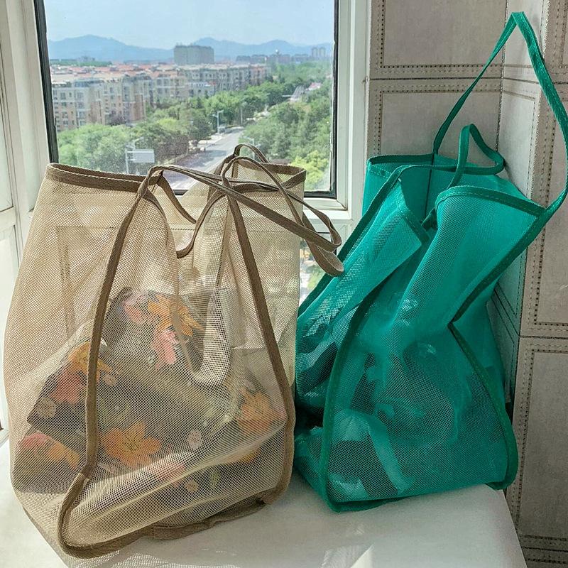 Wind Transparent Mesh Single Shoulder Satchel Lightweight Large Capacity Versatile Shopping Bag Beach Bag