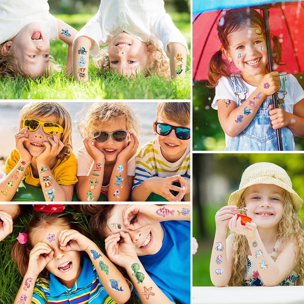 10 Fogli/Set Tatuaggi Adesivi Colorati con Polvere Glitterata Cartone Animato Animale Unicorno Principessa Veicolo Tatuaggio Temporaneo Finto per Bambini — acquista al miglior prezzo sul negozio online Joom