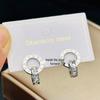 Rose Gold Titanium Steel Diamond Stud & Double Ring Dangle Earrings for Women