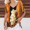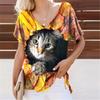 Summer Lovely Cat 3D Print T-Shirts Women Casual V-Neck Short Sleeve T Shirt Y2k Harajuku Animal Tees Loose Tops Female Clothing