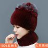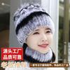 New Rex rabbit fur wool hat women's autumn and winter warm scarf fashion thickened ear protection flower suit tide