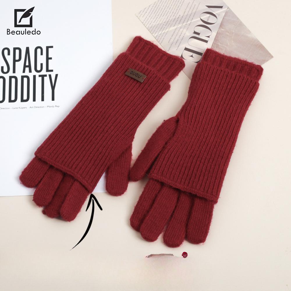 Knitted Wool Finger exposed Touch Screen Five finger Gloves for Women In Autumn and Winter Warmth Plus Velvet Thickening Riding Bike To Prevent Cold