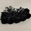 5pcs Artificial Flowers Black Roses Plastic Fake Flowers Long Stem Garden Office Home Decor Wedding Halloween Party Decoration