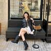 Height Increasing Buckle Mid Tube Western Knight Boots Women's Pile Boots