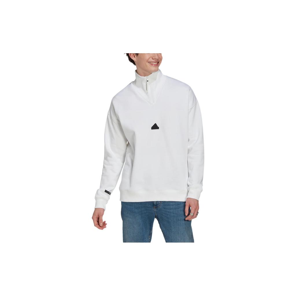 Adidas New Half-Zip Stand Collar Long Sleeve Sweatshirt With Small Logo Patch Men Tops White HG2074