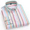 Camicie scozzesi in puro cotone Camicia Oxford a righe casual da uomo d'affari a maniche lunghe con tasca