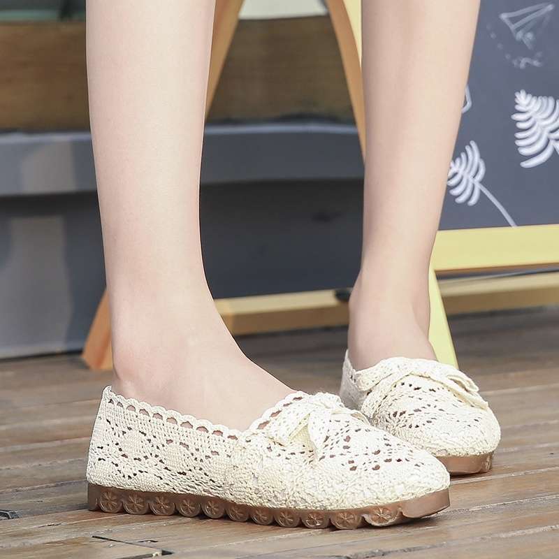 Summer bow cloth shoes women's breathable lace hollow soft-soled shoes flat-soled beanie shoes maternity shoes evening gentle shoes — acquista al miglior prezzo sul negozio online Joom