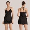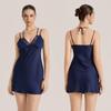 Elegante Camicia da Notte in Raso con Scollo all'Americana e Pizzo: Vestito corto da donna in seta di ghiaccio