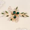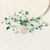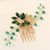 Retro Alloy Rhinestone Plug Comb Handmade Leaf Green Crystal Headdress Antique Hanfu Jewelry Bridal Hair Comb