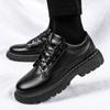 2025 autumn new business black leather shoes men's Hong Kong style low-top men's shoes young men's casual shoes fashion shoes