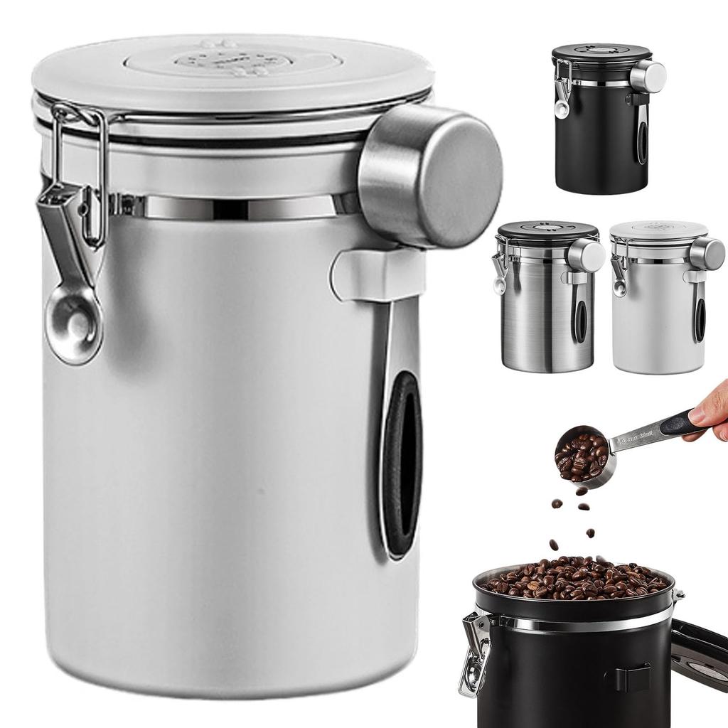 Airtight Coffee Canister, Stainless Steel Food Storage Container, Round, Large Capacity, Airtight Container with Measuring Spoon, Date Display, — acquista al miglior prezzo sul negozio online Joom