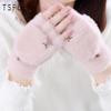 TSFUL Women's Winter Plush Half-Finger Flip-Top Gloves