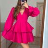 2025 Autumn V-Neck Ruffled Short Dress for Women: European & American Style — acquista al miglior prezzo sul negozio online Joom