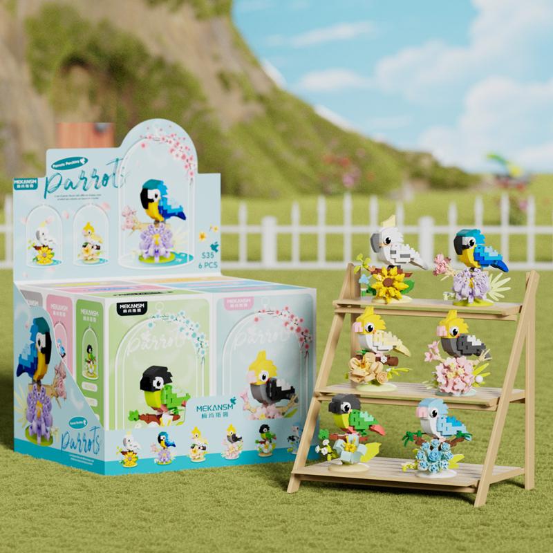 Creative bird parrot building blocks flower color parrot perch animal trendy toys children's educational toys