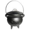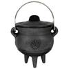 Introducing our Halloween witch pot, a must-have for all your magical rituals and offerings. This exquisite cast iron cauldron is not only a beautiful decoration, but also a functional tool for mixing magical works. It is perfect for burning incense, candles, or offerings to represent your traditional Goddess. Our witch pot features three raised feet that stand upright, integrated with the pot to ensure durability and prevent breakage. These feet also keep the cauldron at a safe distance from any surface, as they do not conduct heat. You can confidently place it on any tabletop without worrying about damage. The witch pot comes with a handle and lid, making it easy to handle and control. The lid quickly extinguishes the flame, leaving behind the perfect aroma. This mini handheld pot fits comfortably in the palm of your hand, ensuring easy and safe burning. The handle rotates left and right for effortless operation. Crafted with heavy-duty cast iron construction, this cauldron is built to last. It is designed for burning incense, and casting spells.