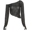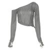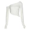 Autunno Nuovo Top Corto da Donna a Tinta Unita Slim Fit Moda Irregolare Asimmetrico Manica Lunga T-Shirt