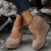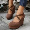 Fashion Women Shoes Flock Buckle Bowtie Ankle Strap High Heels Sexy Platform Wedges Female Pumps Red Wedding Shoe Zapatillas De Deporte