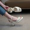 One word with thick heel Roman sandals women's 2025 new summer wear with skirt square head high heels soft sole not tired feet
