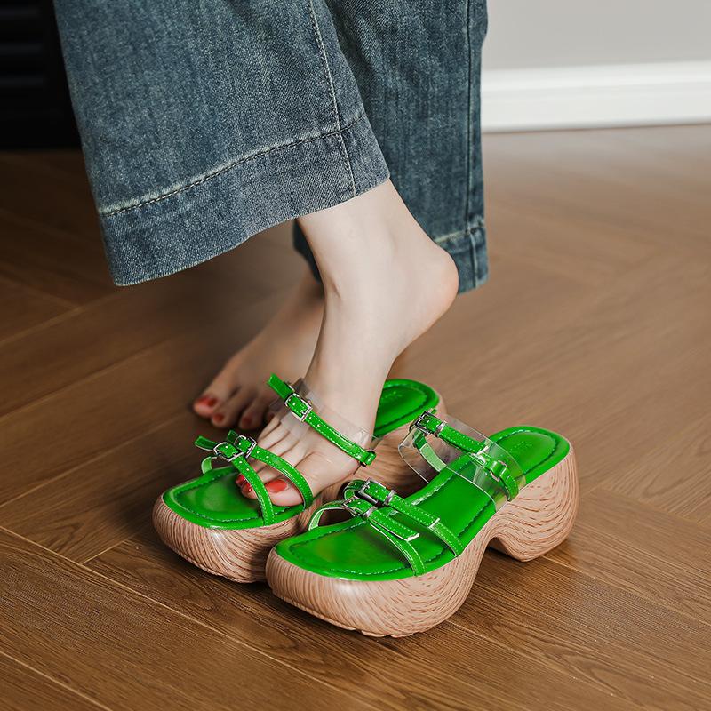 Roman sandals women's thick-soled wedges with thin straps, sandals women's open-toed heightening clogs, beach cool slippers women