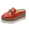 Patent Leather Semi-Slip Women's Square Toe Deep Mouth Pearl Metal Rear Low Non-Slip Wear-Resistant Wedge
