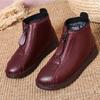 Winter Women Ankle Boots Warm Mother's Boots Flat-Bottom Comfortable Non Slip Front Zipper Closure Female Footwear