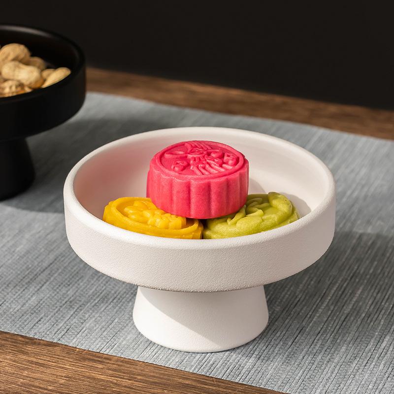 Chinese Style High Footed Fruit Tray Ceramic Tray Living Room Fruit Ornament Decoration Tray Tea and Snack Tray Decoration Tray