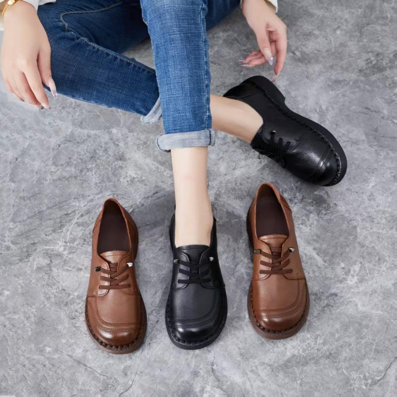 Women's Handmade Retro Leather Lace-up Slip-on Shoes - Soft Sole, Comfortable & Casual — acquista al miglior prezzo sul negozio online Joom