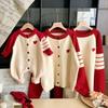 Korean Heart Stripe Family Sweater Set - Baby Romper & Knit Cardigan for Autumn/Winter