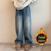 Girls' Fleece-Lined Loose Straight-Leg Jeans: 2025 Winter Casual Pants for Big Kids